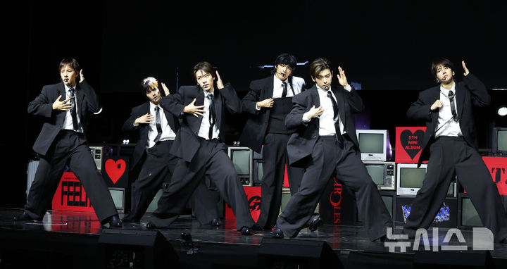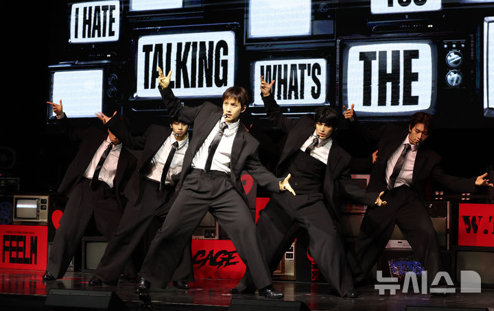 【NEWSIS】男性アイドルグループ82MAJOR(エイティートゥーメジャー)が28日午後、ソウル市西大門区の「YES 24ワンダーロック・ホール」で、5thミニアルバム『FEELM(フィールム)』のショーケースを開催した。写真はポーズするメンバーたち。