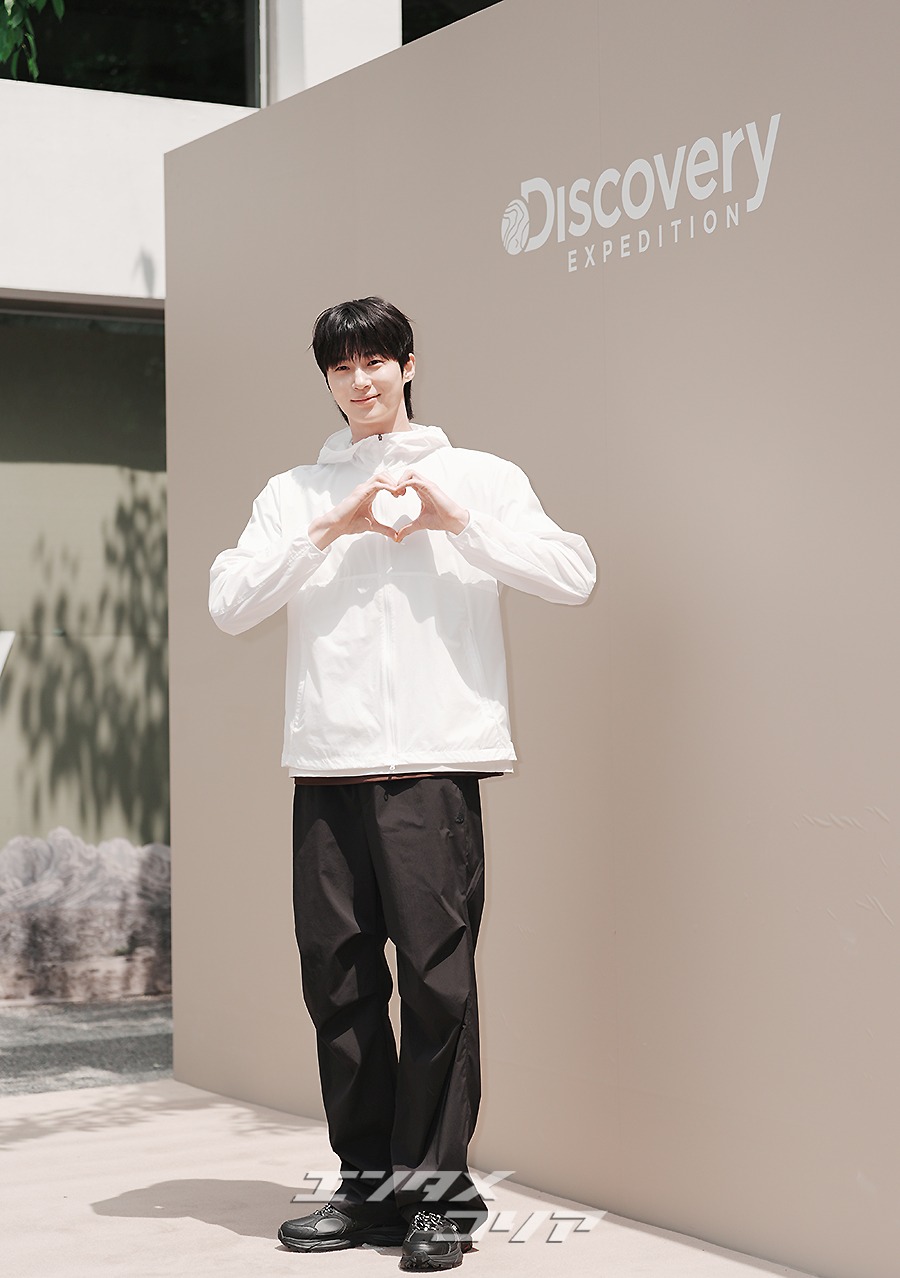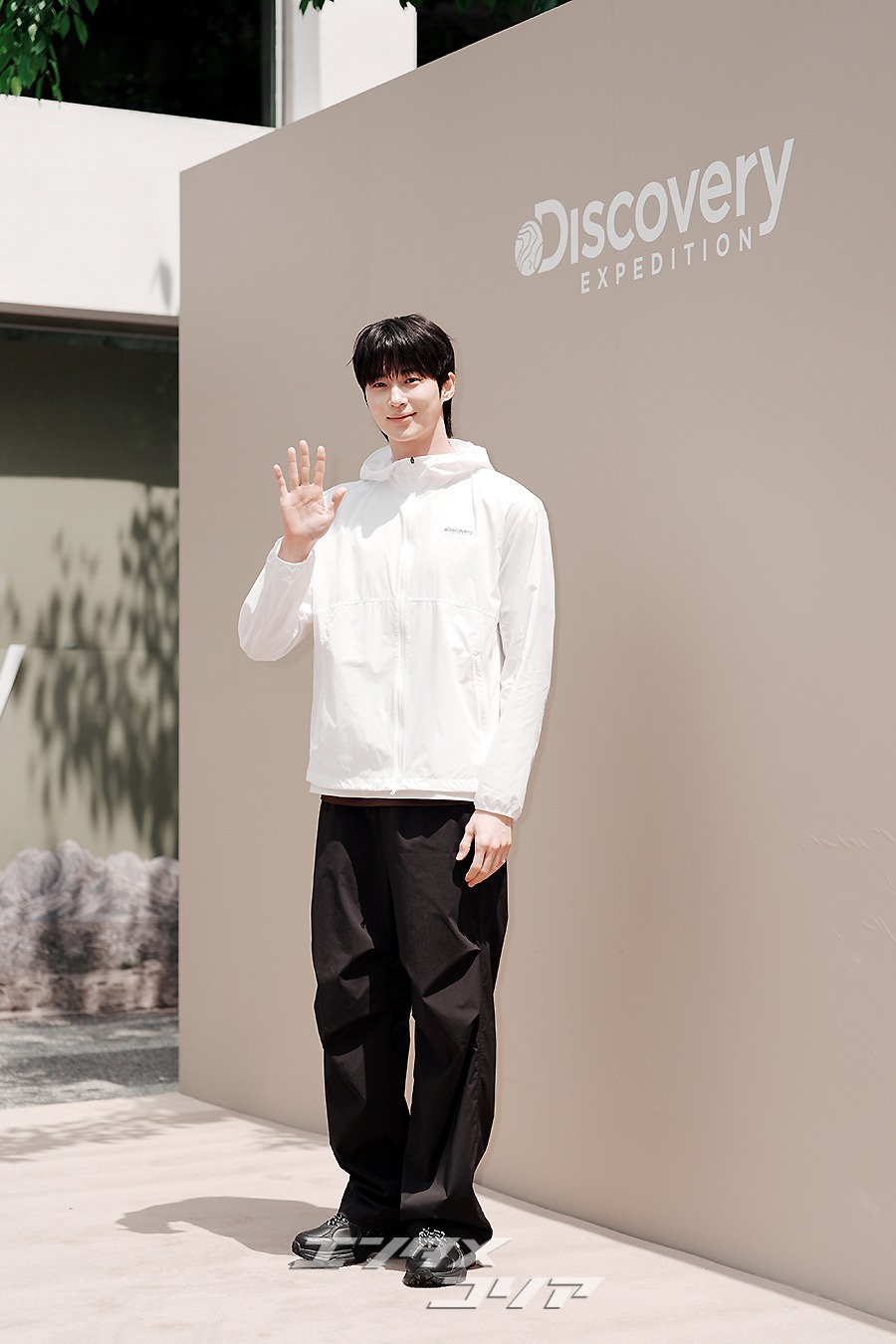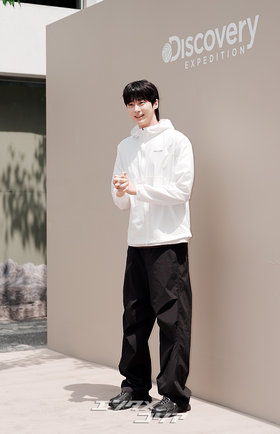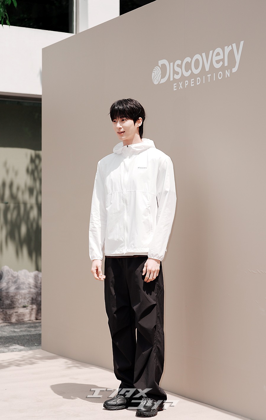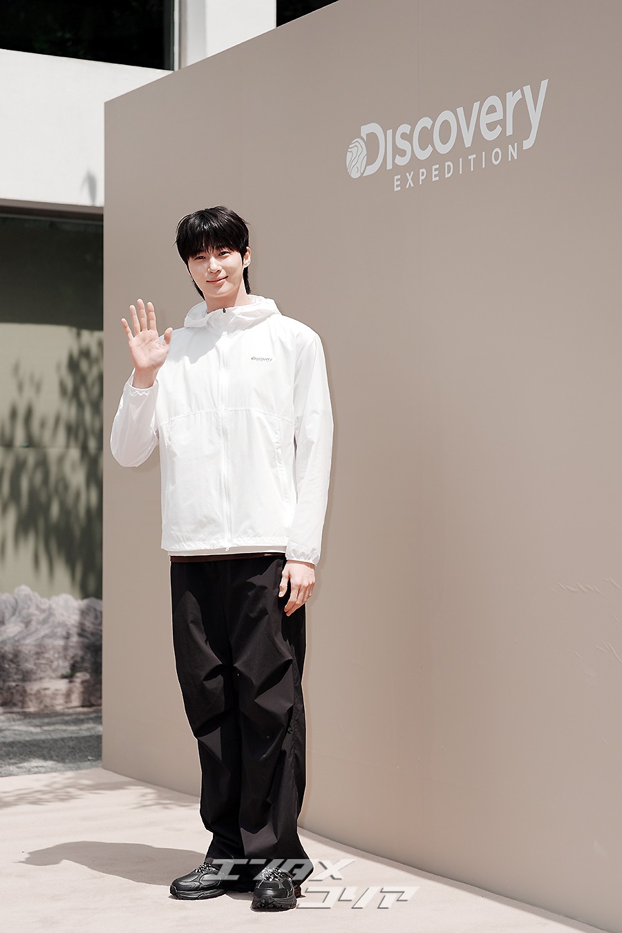 俳優ビョン・ウソクが29日午後1時、ソウル市城東区練武場キルの「Scène」で開かれたアウトドアブランド「Discovery EXPEDITTION」のサマーシーズン・ブランド体験イベント「DISCOVER YOUR ACTIVE SUMMER」の会場を訪れ、写真撮影に応じているところ。