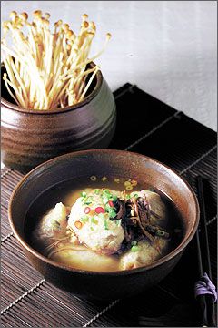 ▲材料:豆腐100グラム、もやし200グラム、白菜キムチ200グラム、タマネギ100グラム、ニラ50グラム、小麦粉1カップ、牛ひき肉100グラム、豚ひき肉70グラム、(にんにくみじん切り大さじ1、生姜のすりおろし小さじ1、砂糖小さじ、ごま塩大さじ1、塩コショウ少々、ごま油大さじ1)、牛の胸肉の出し汁