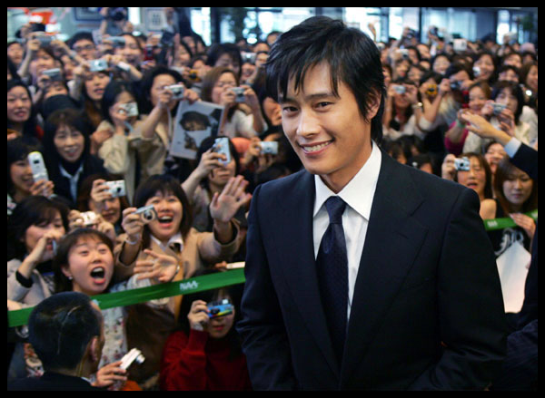 6日、映画『甘い人生』のPRのため日本を訪れた俳優の李炳憲(イ・ビョンホン)が出迎えたファンの歓迎を受けている。