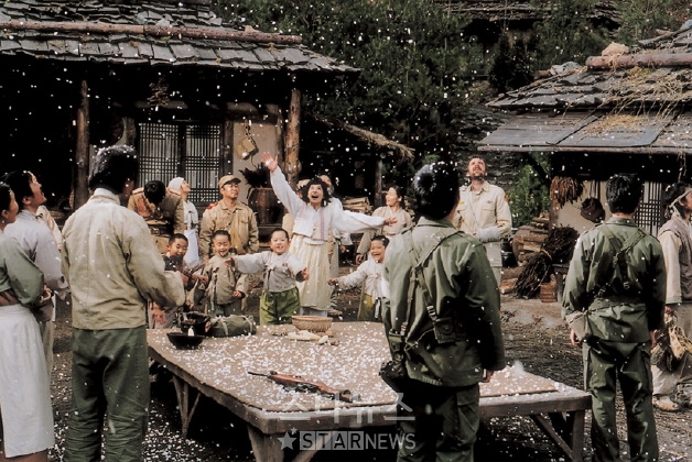 「ポップコーンの雪」シーンは、北朝鮮軍と韓国軍が対峙した中、不発弾だと思った手榴弾が穀物倉庫で爆発、トウモロコシがポップコーンとなり、村中に舞い降りるという内容。
