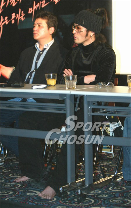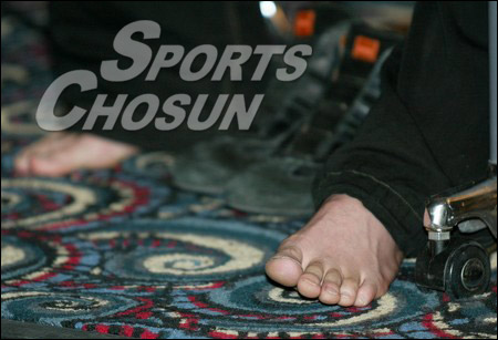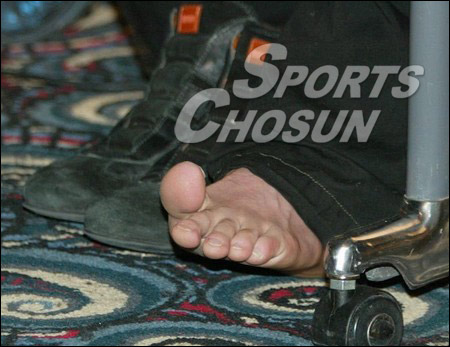 映画『ホリデー』の記者会見で、だれかさんの足が熱っているようだ。