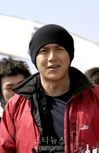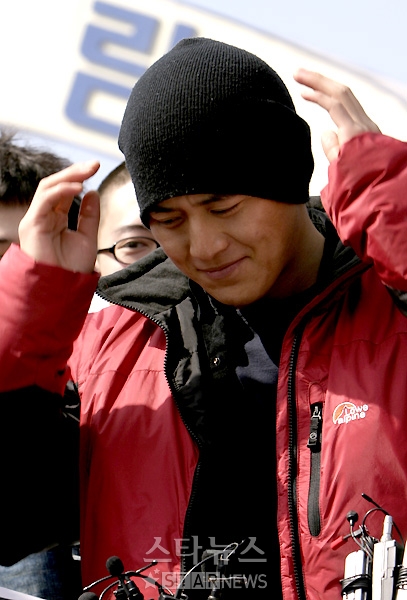 コ・スガ2日午後1時、忠清南道論山訓練所に到着し、待ち構えた取材陣の質問に答えている。