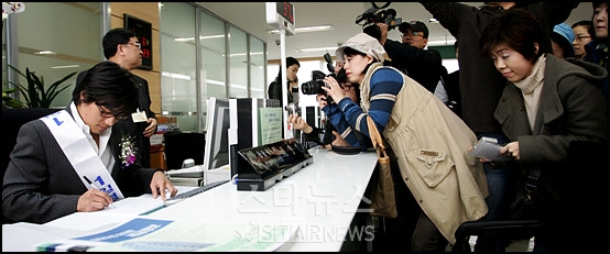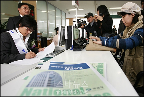 イ・ビョンホンが6日午前10時、ソウル江南税務署で行われた「第40回納税者の日および国税庁開庁40周年行事」で1日民願室長に任命された後、民願(国民が行政機関に対して処分等特定の行為を要求すること)業務を行っている。数十人の日本人ファンが写真を撮りサインをもらうためイ・ビョンホンを待っている。