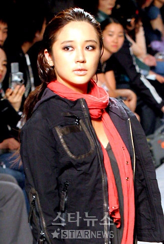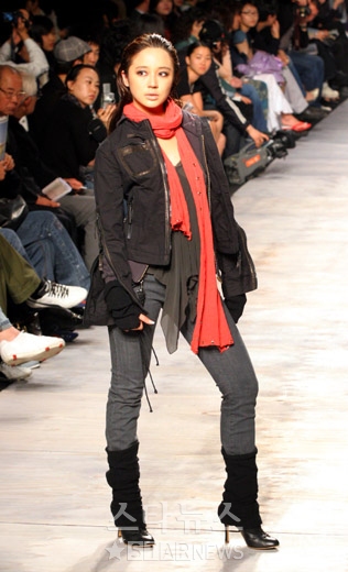 ユン・ウネが24日午後11時30分、ソウル大峙洞のソウル貿易展示場(SETEC)にて開催された「秋冬ソウルコレクション」でデザイナー、コシノミチコのファッションショーにモデルとして参加。ステージの上でポーズをとっている。