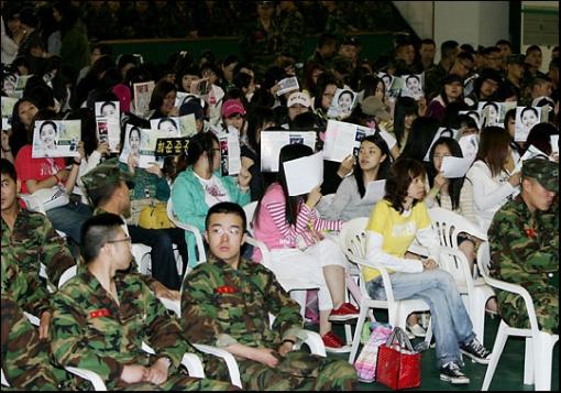 22日午後1時30分、京幾道金浦市陽村の多目的体育館で開かれたチャリティーイベントで、兵営図書館開館式と文化フェスティバルの司会を務めたムン・ヒジュンを一目見ようと100人余りのファンが駆けつけた。