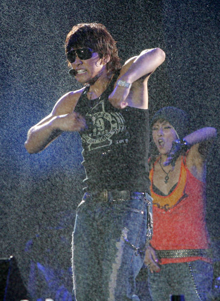 RAINが8日、ベトナム・ホーチミンシティで行われたコンサートで雨が降る中熱唱している(写真=NEWSIS)。