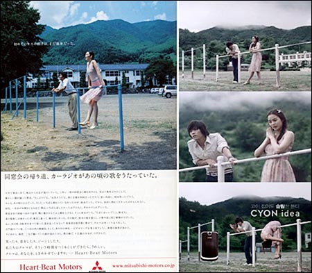 しかしネチズンはこのシーンが三菱自動車のCMと似ていると指摘する。閑散とした田舎の学校の校庭、鉄棒に寄りかかる恋人同士、服装のコンセプトまで似ているとしている。