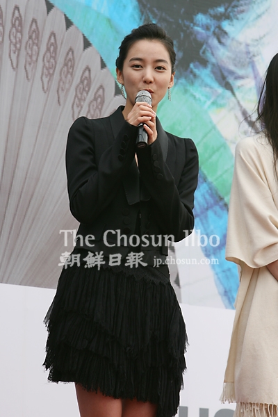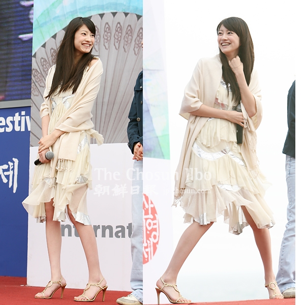 17日午後2時、釜山海雲台PIFF野外舞台で行われたアジアフィルムマーケット「2006スターサミット・アジアキャスティングボード」で舞台あいさつをしている日本の女優の関めぐみとイ・ソヨン。