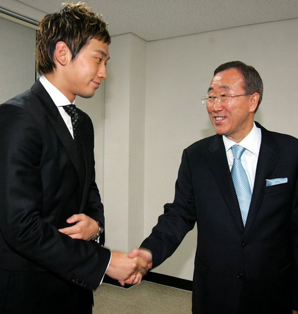 【フォト】潘基文次期国連事務総長と握手するRain