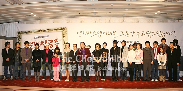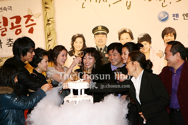 28日午後、ソウル汝矣島の63ビルディングで開かれたKBS2ドラマ『噂の七姫』の撮影終了パーティーで、出演者と演出スタッフらが乾杯している。