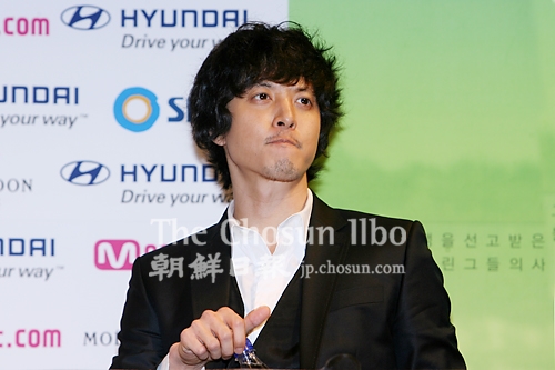 22日午後、ソウル押鴎亭CGVでSBSの1話完結ドラマ『愛するなら彼らのように』の制作発表会を兼ねた試写会が行われ、主演のイ・ドンゴンが緊張した表情で質問に答えている。 同ドラマは不治の病と闘いながら歌手を目指すイ・ヒョリと、チンピラのイ・ドンゴン、芸能事務所の社長の間で繰り広げられるラブストーリーだ。放送は23日。