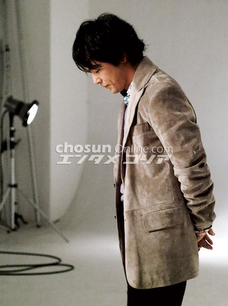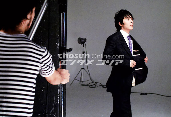 ▲自らポーズを考え中 撮影は朝早くから夜まで続いたが、パク・ヨンハはまったく疲れを見せず、終始、写真家と息がピッタリのところを見せ、プロらしくさまざまなポーズに応じていた。