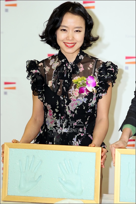 女優チョン・ドヨンが10日午後、ソウル麻浦区上岩洞文化コンテンツセンターで行われた「韓国映画博物館手形(ハンドプリンティング)イベント」(韓国映像資料院主催)に参加し、自分の手形を持って微笑んでいる。 今回制作された映画人たちの手形の銅版は、5月9日に開館する韓国映画博物館の映画庭園で一般人に公開される。