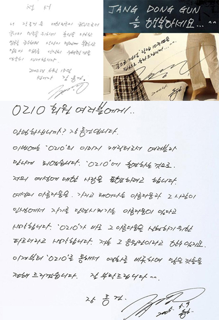 2日、あるネットユーザーが主なポータルサイトに掲載した「チャン・ドンゴンの直筆メッセージ」画像にアクセスが殺到している。2002年と05年に書かれたと思われるチャン・ドンゴンの字は、彼の顔と同じように美しく、整っている。コンピュータのフォントと言ってもそのまま信じてしまいそうなほどだ。