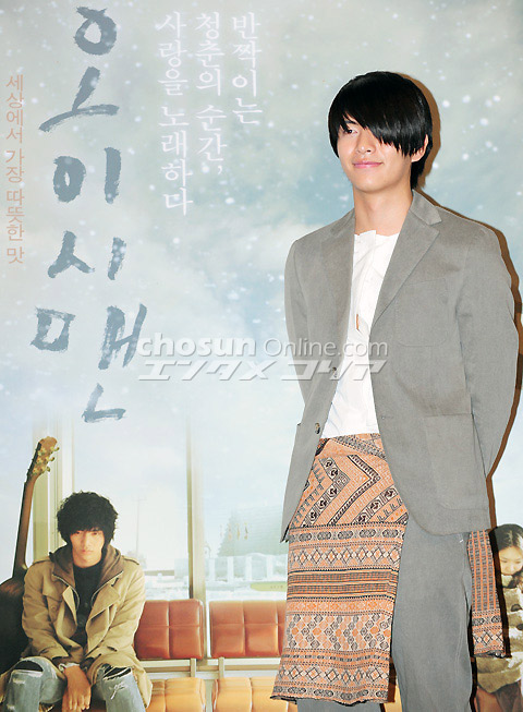 10日午後、ソウル市内の映画館「往十里CGV」で、映画『おいしいマン』の記者試写会・記者懇談会が行われた。写真は記者の質問に耳を傾けるイ・ミンギ。 北海道で偶然に出会った男女が、音楽という共通点を通じ、愛を見いだすラブストーリー『おいしいマン』は19日公開。