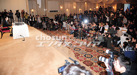 故チャン・ジャヨンさんの元マネージャー、ユ某さんが18日午後3時、ソウル市鍾路区付岩洞のAWコンベンションセンターで記者会見を行い、固い表情で現在の心境を語っている。 ユさんは故チャン・ジャヨンさんの死後、チャンさんの自筆の文書があるという事実を公開して注目を浴び、この文書の内容がメディアに報じられた13日、自殺未遂騒ぎを起こして入院し、この日午前に退院した。