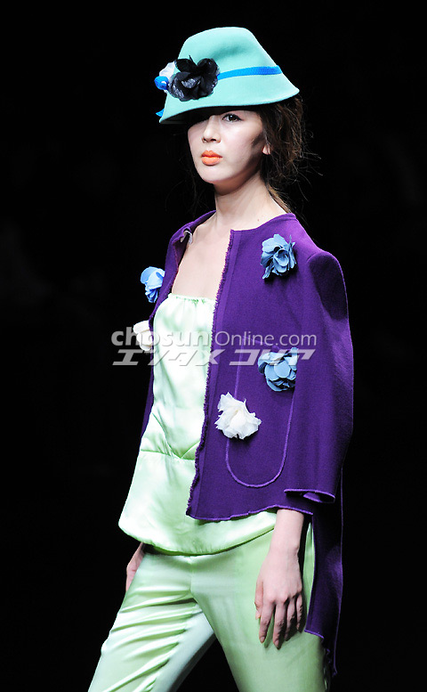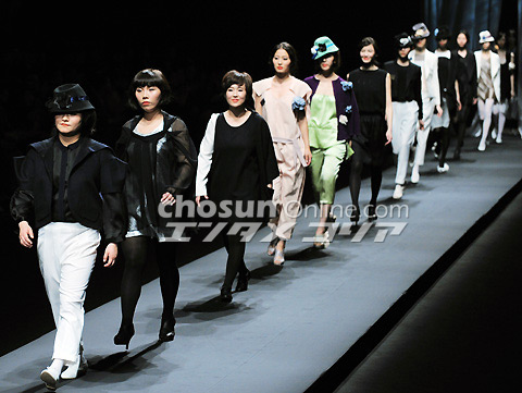 29日午後3時、ソウル貿易展示場(SETEC)=ソウル市江南区大峙洞=で、「09/10秋冬ソウル・ファッション・ウイーク」が行われた。写真はデザイナー、イム・ソノクのコレクションで、メーンモデルを務めたバラエティー番組『無限ガールズ』(ケーブルチャンネルMBC every1)のレギュラー陣。フィナーレのキャットウォークを歩く姿はモデル顔負け!?