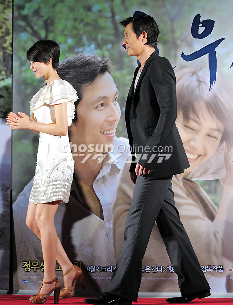 8日午前11時、東大門メガボックス(ソウル市中区)で映画『きみに微笑む雨』(ホ・ジノ監督)の制作報告会が行われた。主演のチョン・ウソンとカオ・ユアンユアンが仲良くポーズを取っている。 同作品は、留学時代に淡い恋心を抱いていた二人が、数年後に偶然再会し、本物の恋に落ちるという内容。『八月のクリスマス』『春の日は過ぎゆく』など恋愛映画の名匠ホ・ジノ監督が贈る、ロマンティックな大人のラブ・ストーリーだ。10月8日公開予定。