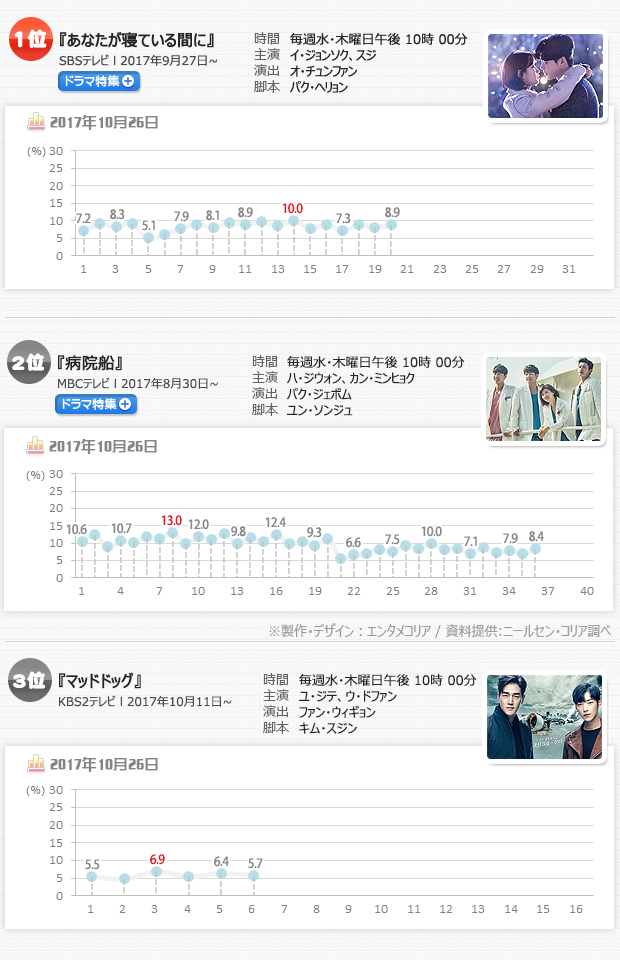 同時間帯に放送された『病院船』(MBC)は第35話が7.0%、第36話が8.4%で、わずかな差で『あなたが寝ている間に』を追っている。