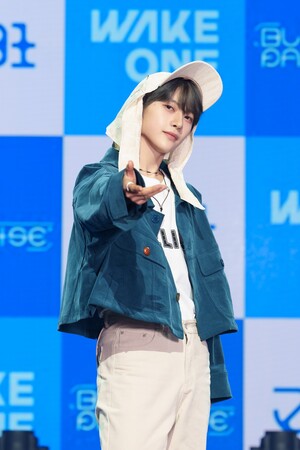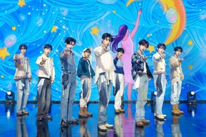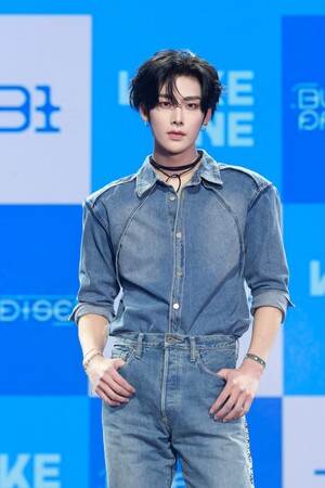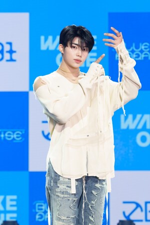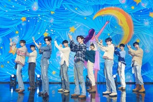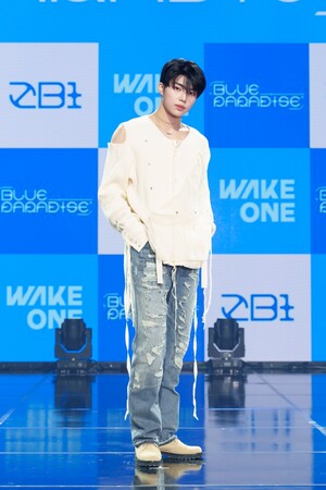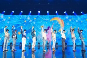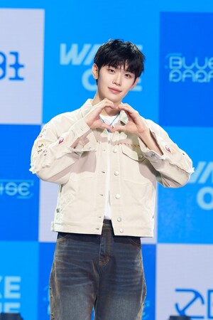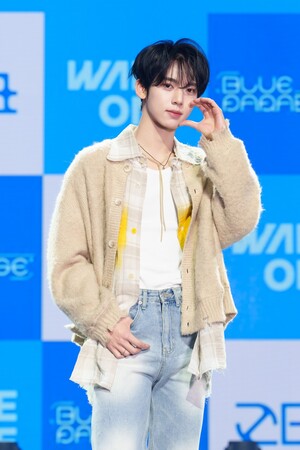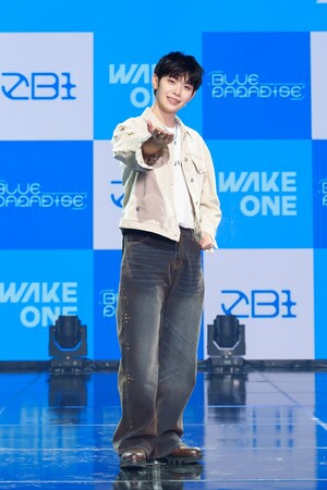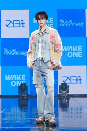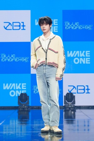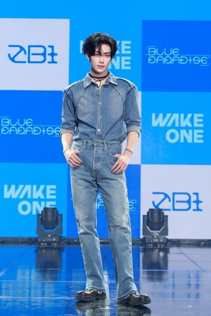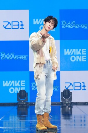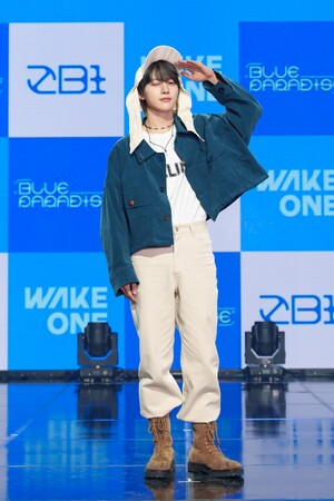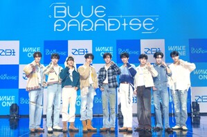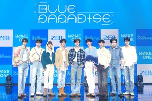 ボーイズグループZEROBASEONE(写真左からキム・ギュビン、キム・ジウン、ソク・マシュー、ハン・ユジン、ジャン・ハオ、ソン・ハンビン、キム・テレ、リッキー、パク・ゴヌク)が24日午後、ソウル市竜山区のブルースクエアで開かれた5枚目のミニアルバム「BLUE PARADISE」のリリース記念先行公演でポーズを取っているところ。