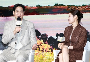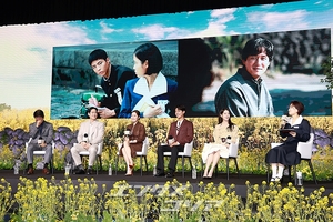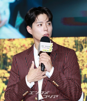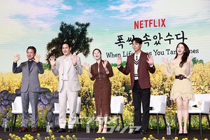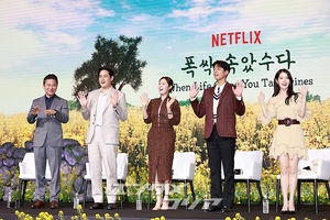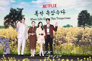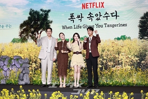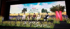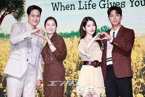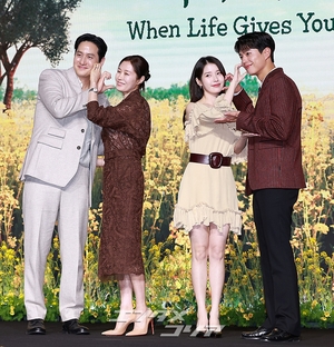 パク・ヘジュン、ムン・ソリ、IU(アイユー)、パク・ボゴム(写真左から)が5日、ソウル市永登浦区のコンラッド・ソウルで行われた動画配信サービスNETFLIXオリジナルシリーズ『おつかれさま』の制作発表会に出席した。