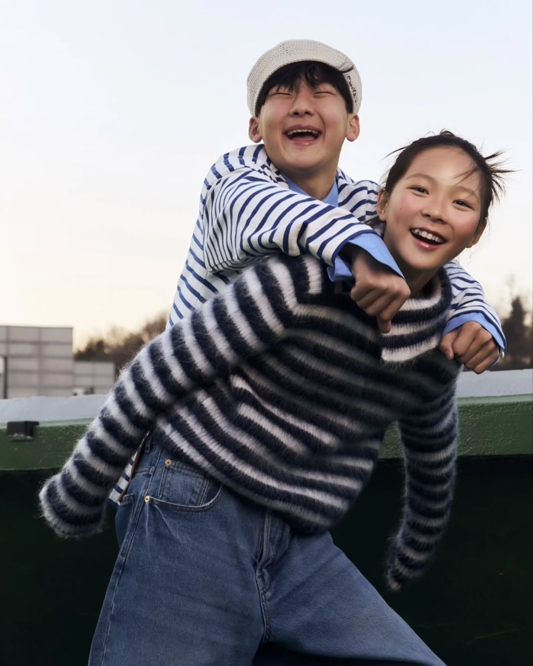 このたび公開された写真を見ると、紗蘭さんは12年来の親友ユウトさんと一緒に学校でさまざまなポーズを取っている。ボーダー柄の服を着た二人は屋上でおんぶするようなポーズを取っており、躍動感あふれる姿がほほ笑ましい。