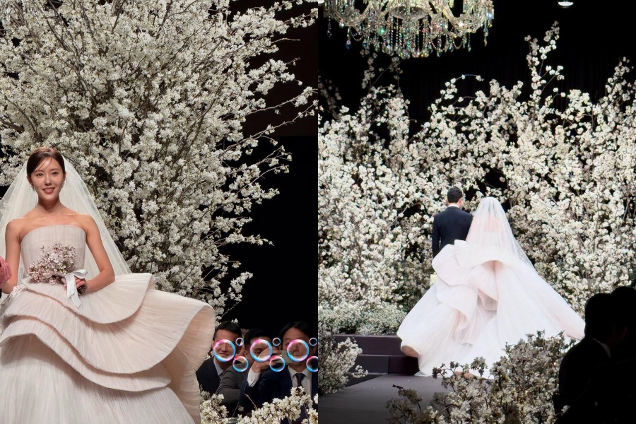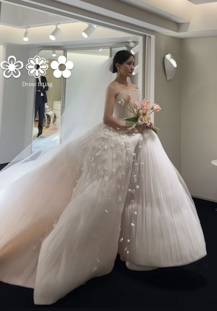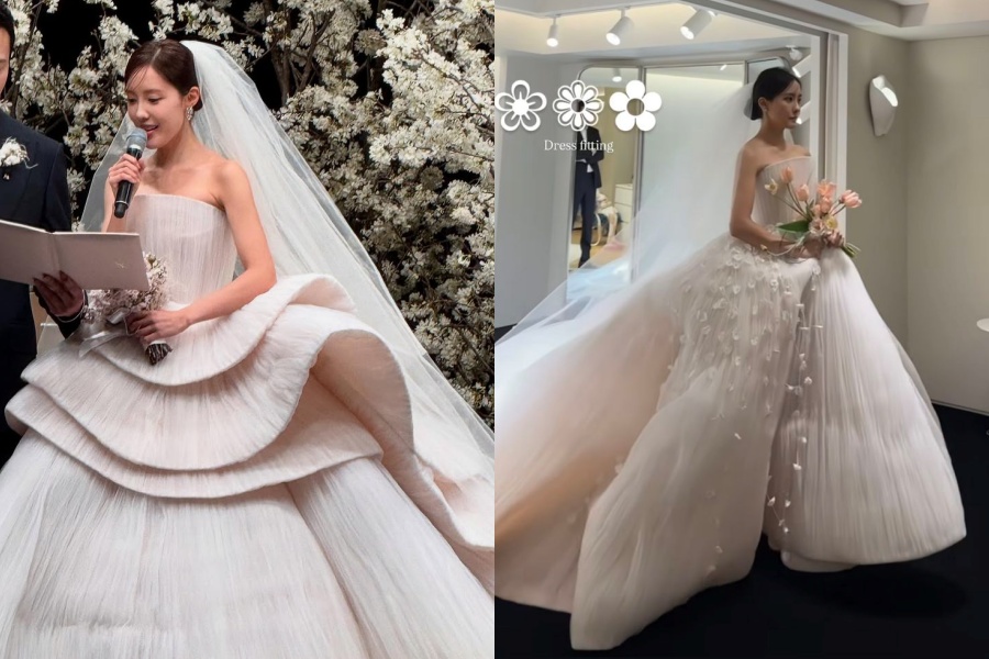 また、ドレスを試着する様子を撮影した動画もアップした。ヒョミンが式の第1部で着たドレスは「2025春夏SARA MRAD(サラ・ムラド)ハイエンド」のウエディングドレスで、韓国にたった2着しかないという。