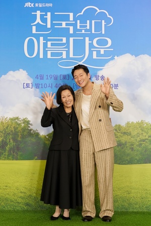 『君は天国でも美しい』は、80歳の姿で天国に到着したイ・へスク(キム・ヘジャ)が30代の姿に若返った夫コ・ナクチュン(ソン・ソック)と再会することで繰り広げられる、現世を超越したロマンスを描く作品。19日午後10府40分から放送が始まる。