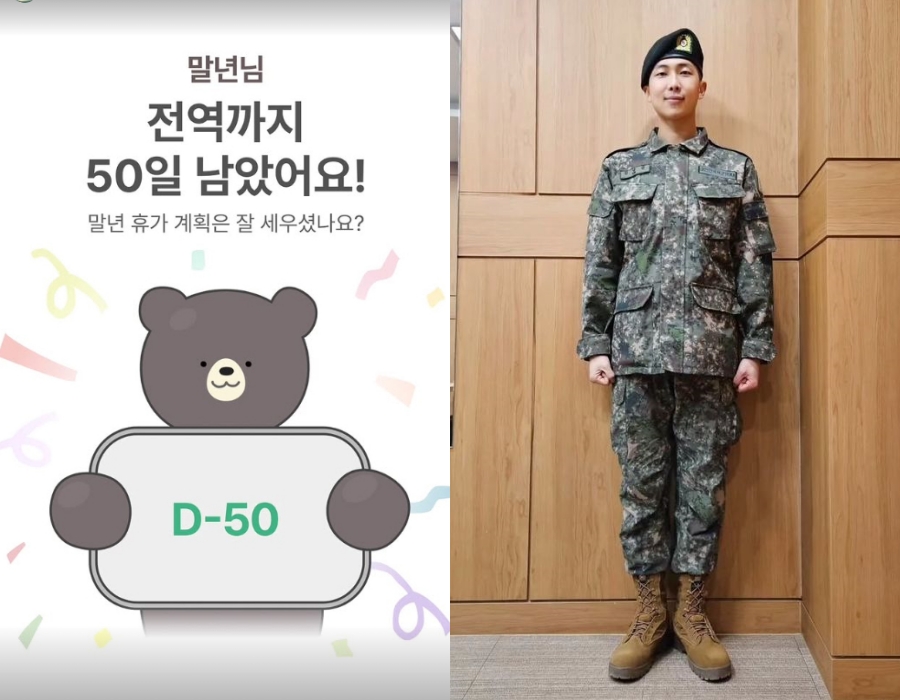 このアプリは残りの兵役期間を教えてくれるものだ。アプリ画面には「除隊まであと50日です! 最後の休暇の計画はもう立てましたか?」と書かれている。これを見ると、RMの除隊日が近づいていることが分かる。