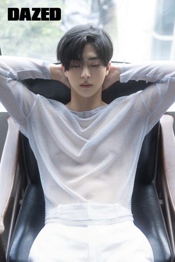 「DAZED KOREA」が生まれて初めてのファッショングラビアとなったキム・ムジュンは「緊張がどこかに行ってしまうほど、撮影の雰囲気に自然と溶け込みました。特別だけど見慣れたような、独特な時間を過ごしました」と感想を述べた。