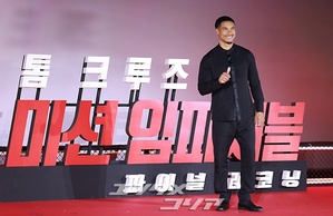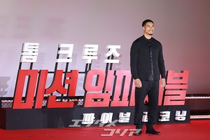 ソウル市松坡区の映画館「ロッテシネマ・ワールドタワー」で8日、映画『ミッション:インポッシブル/ファイナル・レコニング』の記者懇談会が開かれ、監督とキャストがポーズを取っている様子。