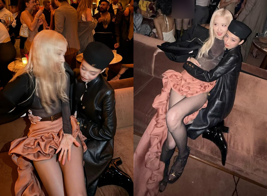 ロゼが公開した写真は、、メットガラのアフターパーティーで撮ったもの。この日、黒いブラジャーがはっきり見えるシースルーのトップスに華やかな超ミニスカートを合わせたロゼは、イベントで会ったジェニーのひざに座り、いたずらっぽい2ショットを完成させた。