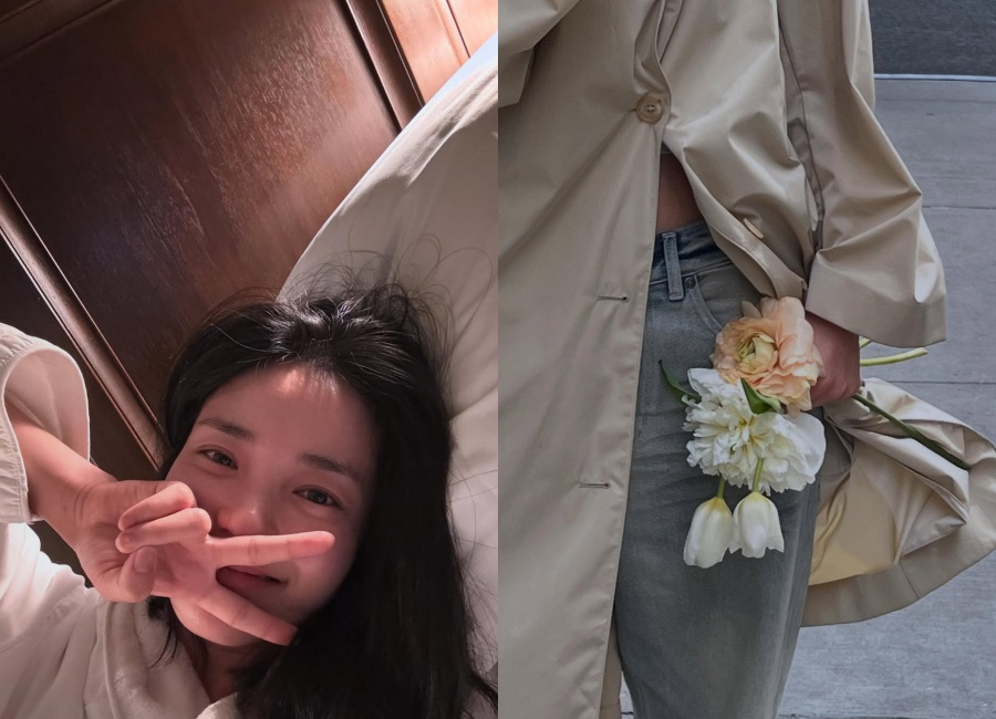 写真でキム・テリはベッドに横になり、就寝前に自撮りしている。すっかりメイクを落としたのにもかかわらず、白い肌と若々しい美しさに驚かされる。また、コートにジーンズという装いで片手に花を持つ感性的な写真も掲載した。