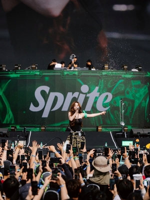 スプライトのイメージキャラクターを務めているカリナはイベント二日目に当たる7月5日、ステージに立ち、観客たちにスプライトのように涼しげでさわやかなエネルギーを届けた。