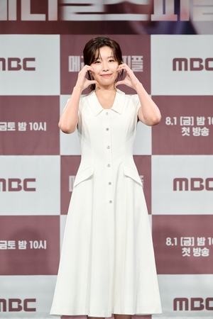 俳優イ・ミンギ、イ・ボヨン、カン・ギヨン、ユン・ガイ、クォン・ヘヒョ(写真左から)が31日午前、ソウル市麻浦区のMBCで開かれた新金土ドラマ『メリー・キルズ・ピープル』制作発表会でポーズを取っているところ。