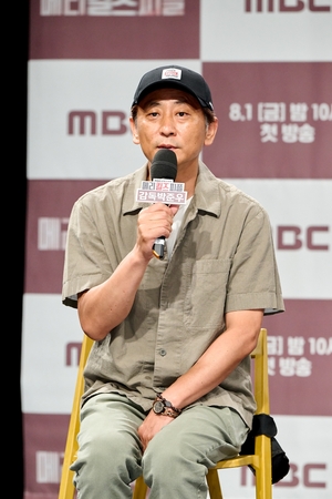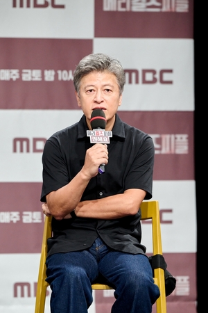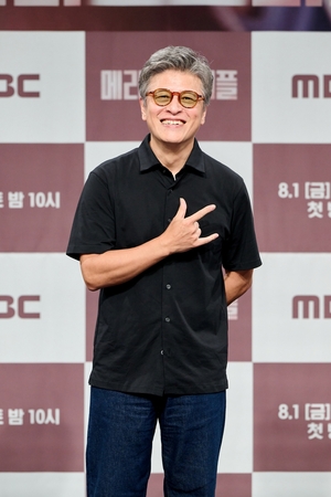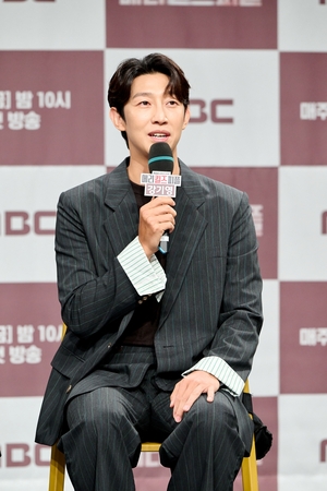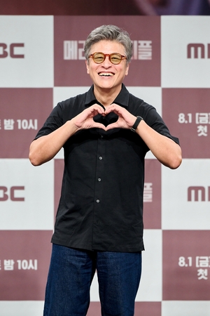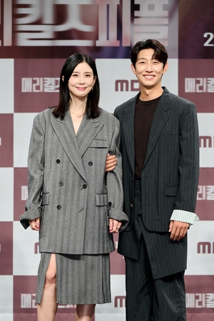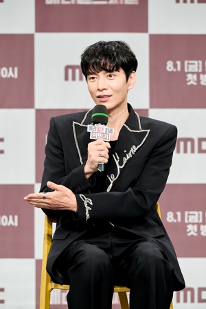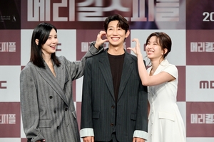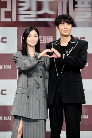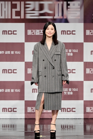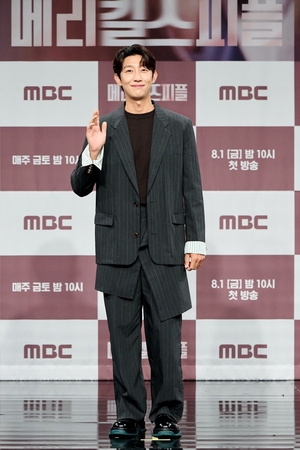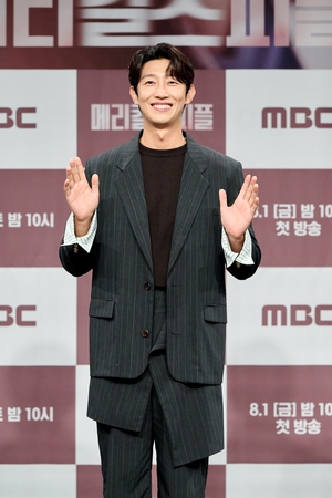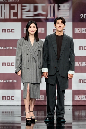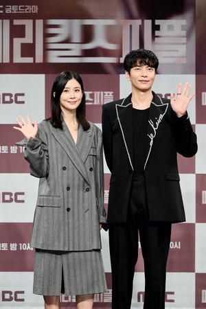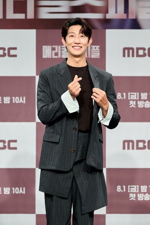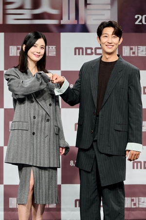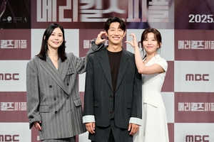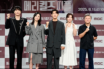 俳優イ・ミンギ、イ・ボヨン、カン・ギヨン、ユン・ガイ、クォン・ヘヒョ(写真左から)が31日午前、ソウル市麻浦区のMBCで開かれた新金土ドラマ『メリー・キルズ・ピープル』制作発表会でポーズを取っているところ。