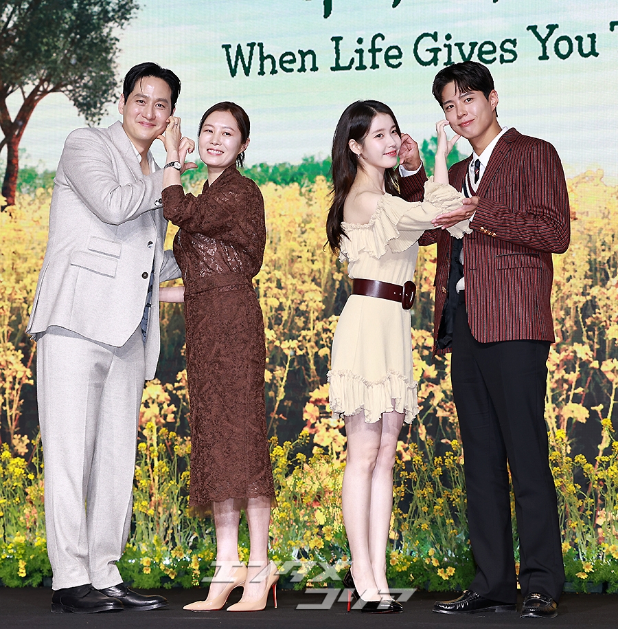 ユ・ジテ(写真左から)、パク・ジフン、ユ・ヘジン、チョン・ミド、チャン・ハンジュン監督が19日午前 ..