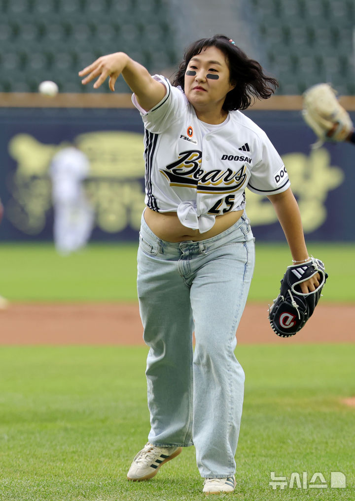 【フォト】始球式をするお笑いタレントのイ・スジ /ソウル(1/5)