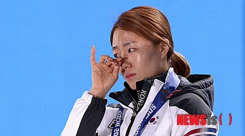 李相花「金」、表彰台で涙=Sスケート女子500(16/19)