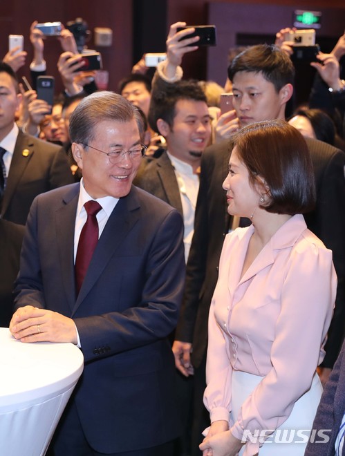 【フォト】文大統領と握手するソン・ヘギョ(3/7)