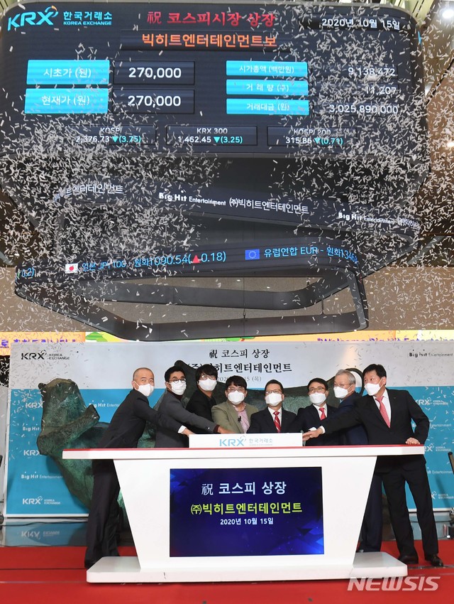 BTS所属のビッグヒット・エンタ、KOSPI上場(2/19)