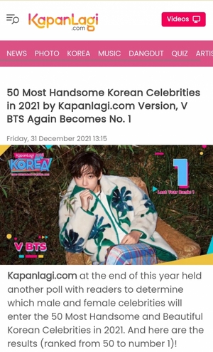 BTSのV、インドネシアで「韓国最高のイケメン」1位…キム・ソンホ、イ・ミンホもランクイン(1/2)