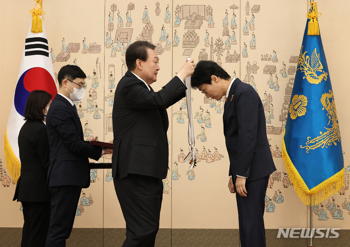 尹錫悦大統領、ファン・ドンヒョク監督と俳優イ・ジョンジェに金冠文化勲章を授与(15/16)