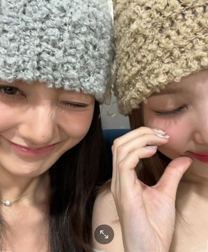 TWICEジヒョ&ナヨン、LE SSERAFIMサクラが編んだニット帽をかぶり仲良くポーズ(1/2)