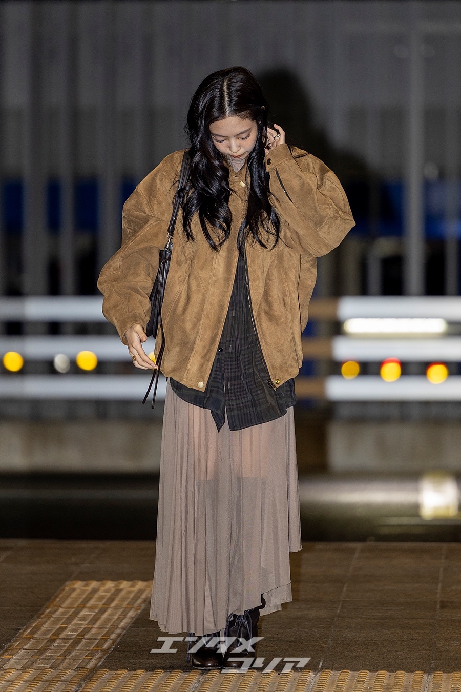 【フォト】BLACKPINKジェニー、スエードジャケット&シフォンスカート姿で出国(11/17)