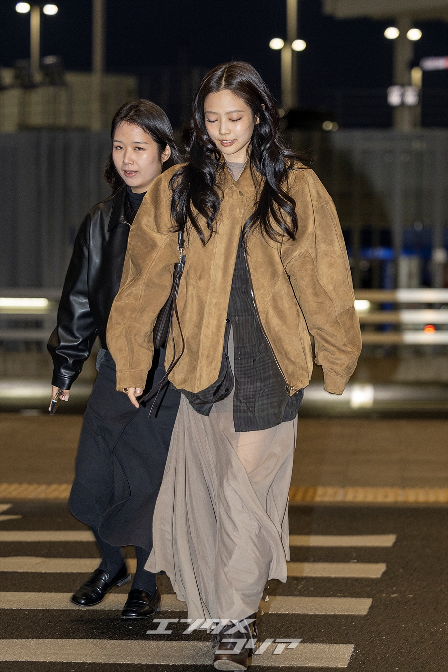 【フォト】BLACKPINKジェニー、スエードジャケット&シフォンスカート姿で出国(17/17)