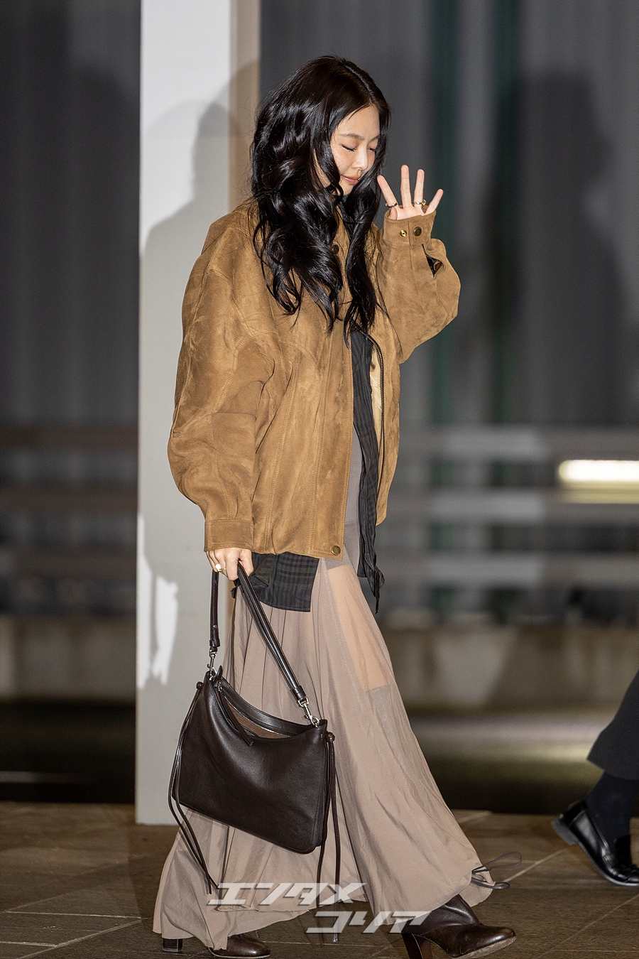 【フォト】BLACKPINKジェニー、スエードジャケット&シフォンスカート姿で出国(4/17)