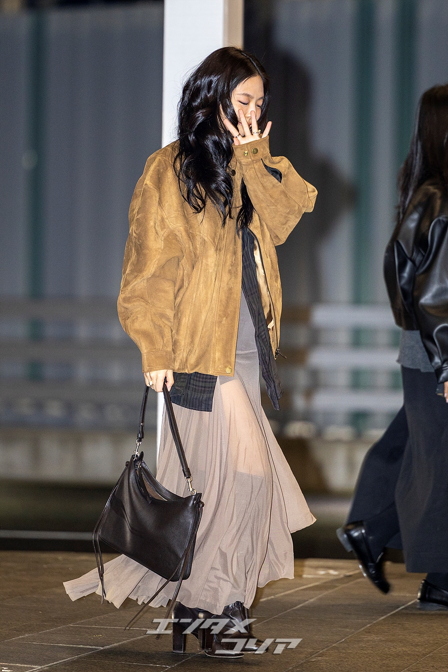 【フォト】BLACKPINKジェニー、スエードジャケット&シフォンスカート姿で出国(5/17)