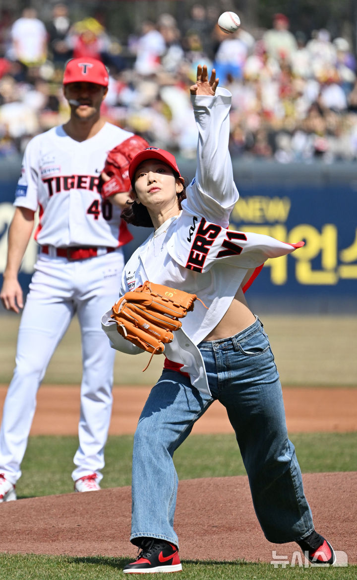【フォト】ランディ・ジョンソンみたい! 始球式で投球するパク・シネ(4/5)